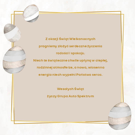 W Wielką Sobotę (4.04) oraz Poniedziałek Wielkanocny (6.04) wszystkie nasze salony i serwisy będą zamknięte.